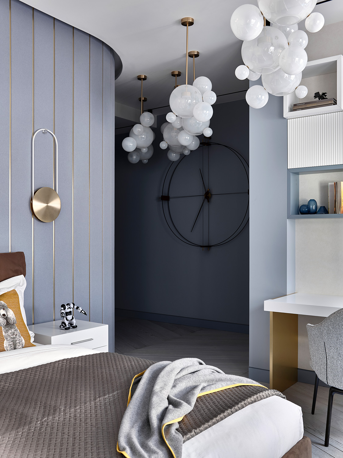Что касается характера интерьера — это современный, люксовый интерьер, продуманный до мелочей, который сложно обозначить рамками какого-либо стиля.